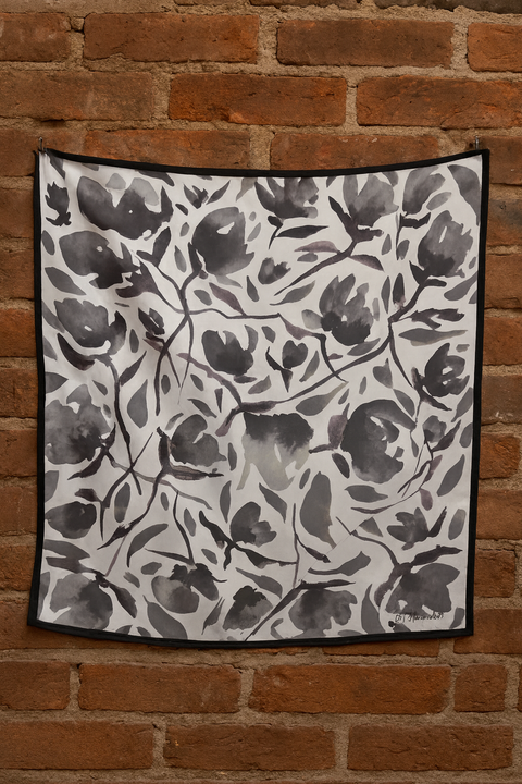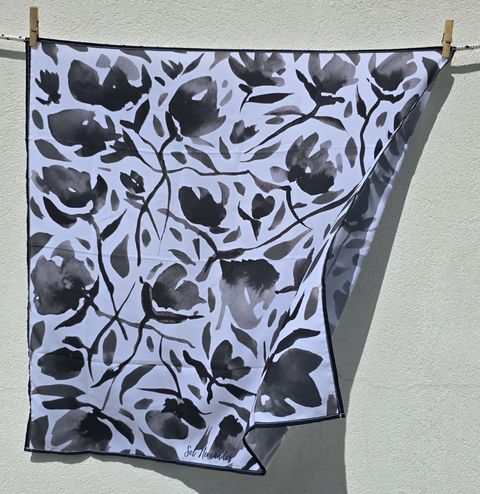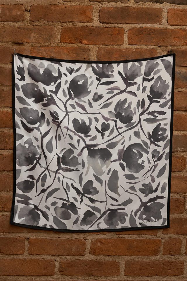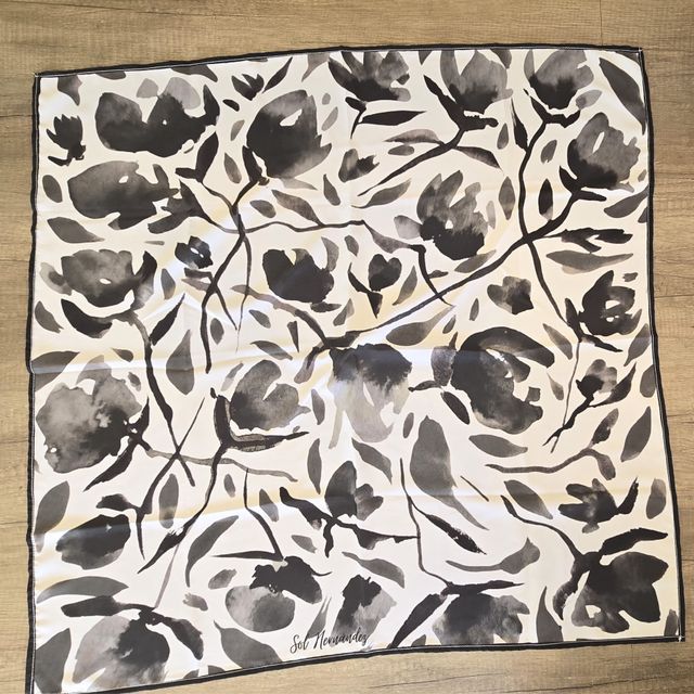 Este pañuelo exclusivo esta realizado en seda lavada de alta calidad, suave al tacto y con una caída fluida que acompaña el movimiento. Su diseño nace de una pintura original en acuarela, donde los matices y transparencias propios de la técnica se traducen en un estampado delicado, artístico y lleno de personalidad.