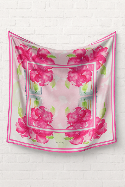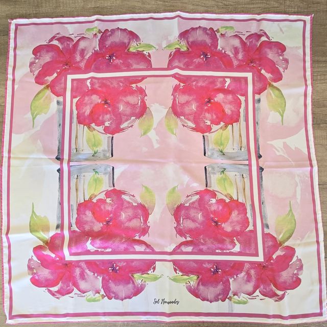 Este pañuelo exclusivo esta realizado en seda lavada de alta calidad, suave al tacto y con una caída fluida que acompaña el movimiento. Su diseño nace de una pintura original en acuarela, donde los matices y transparencias propios de la técnica se traducen en un estampado delicado, artístico y lleno de personalidad.