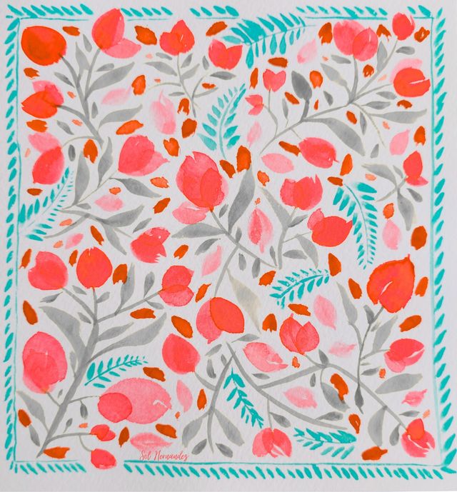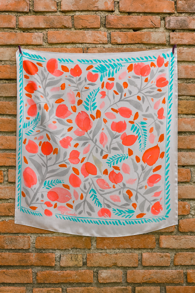 Pañuelo de seda lavada - Ilustración en acuarela