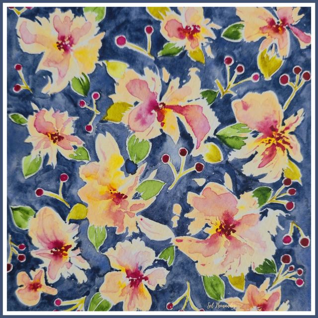 Pañuelo de seda lavada - Ilustración en acuarela